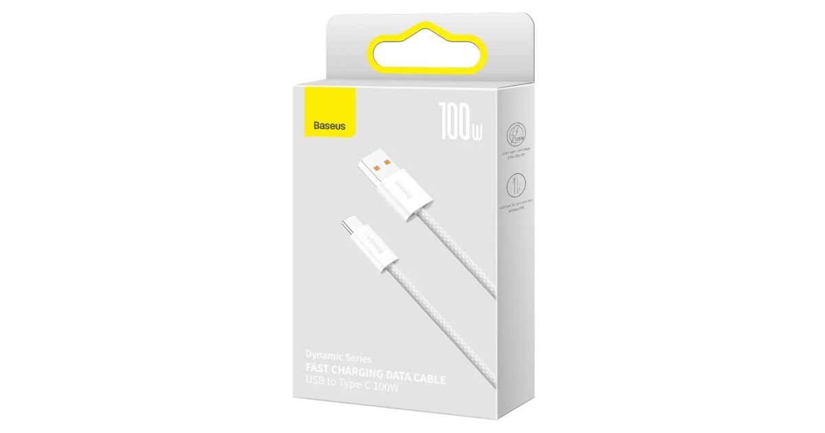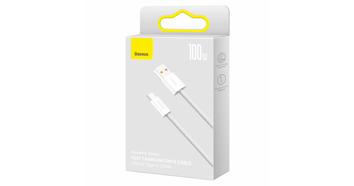 Kábel Baseus Dynamic Series, USB na USB-C, 100 W, 2 m, biely popis