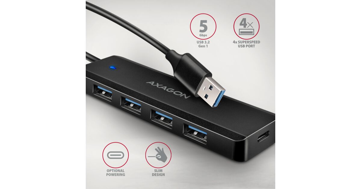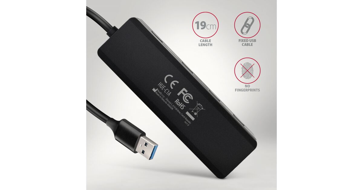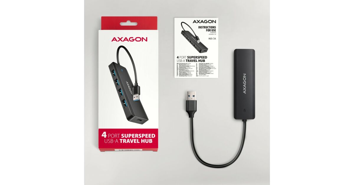 AXAGON cestovný húb USB-A / HUE-C1A / USB 3.2 Gen1 / 4x USB-A / 1x USB-C / 0,19 m názory