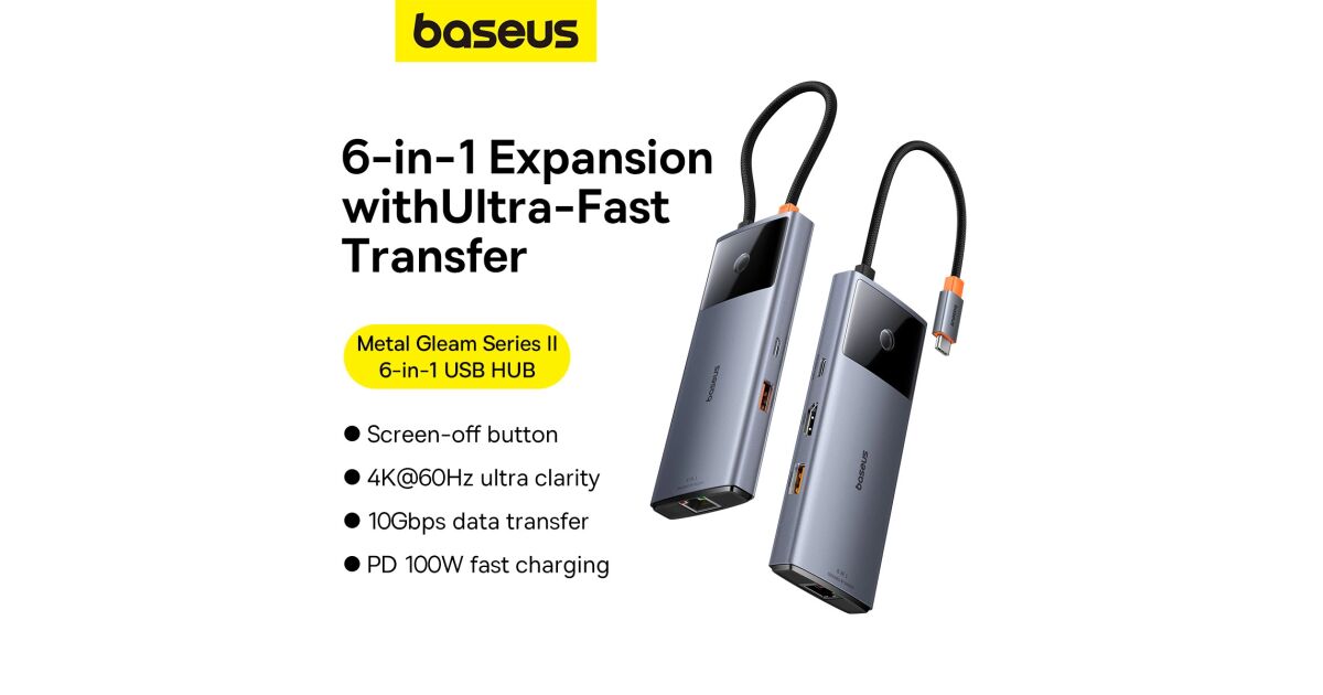 Baseus Metal Gleam 2 6 v 1 USB-C Hub je perfektná voľba pre všetkých, ktorí si cenia rýchlosť, stabilitu a pohodlie.
