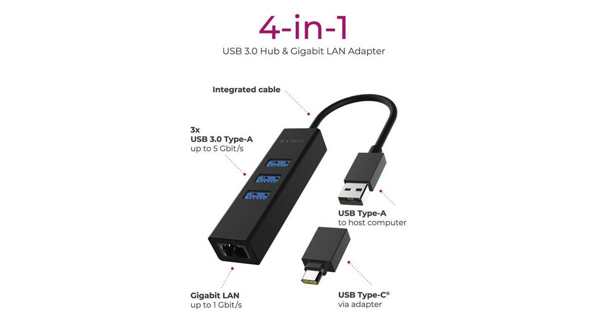 RaidSonic IcyBox 4-portový USB 3.0 Hub s Gigabit LAN: Perfektné pripojenie pre všetky vaše zariadenia 💻