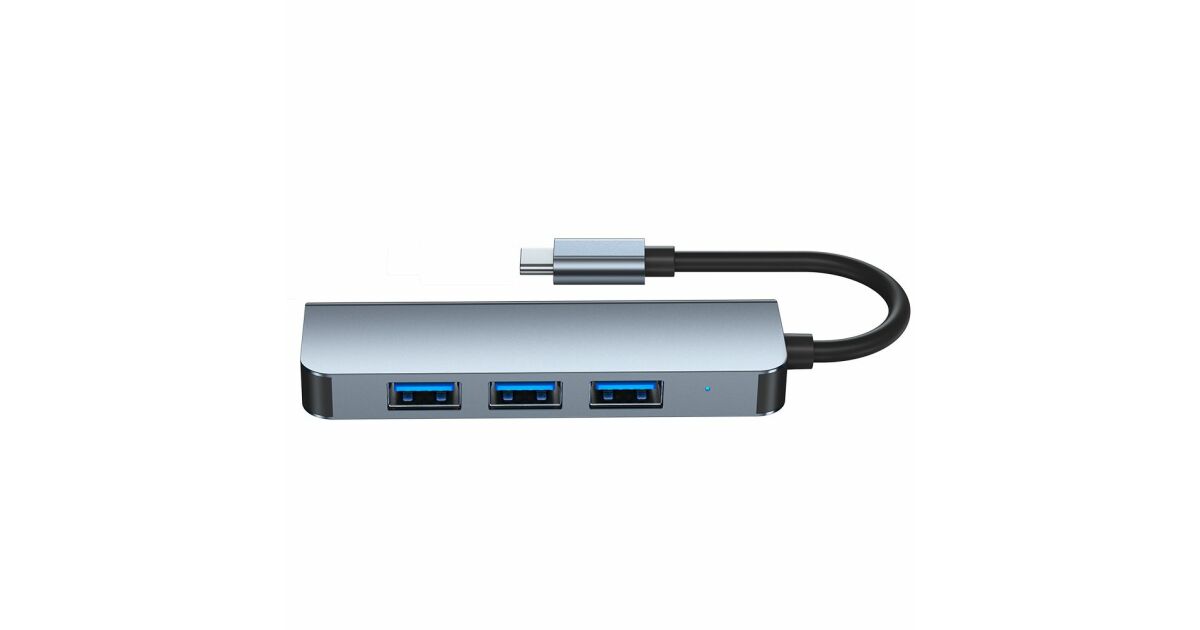 Tech-Protect V1 4-v-1 hliníkový HUB adaptér, USB typu C – 4x USB 3.0, šedý