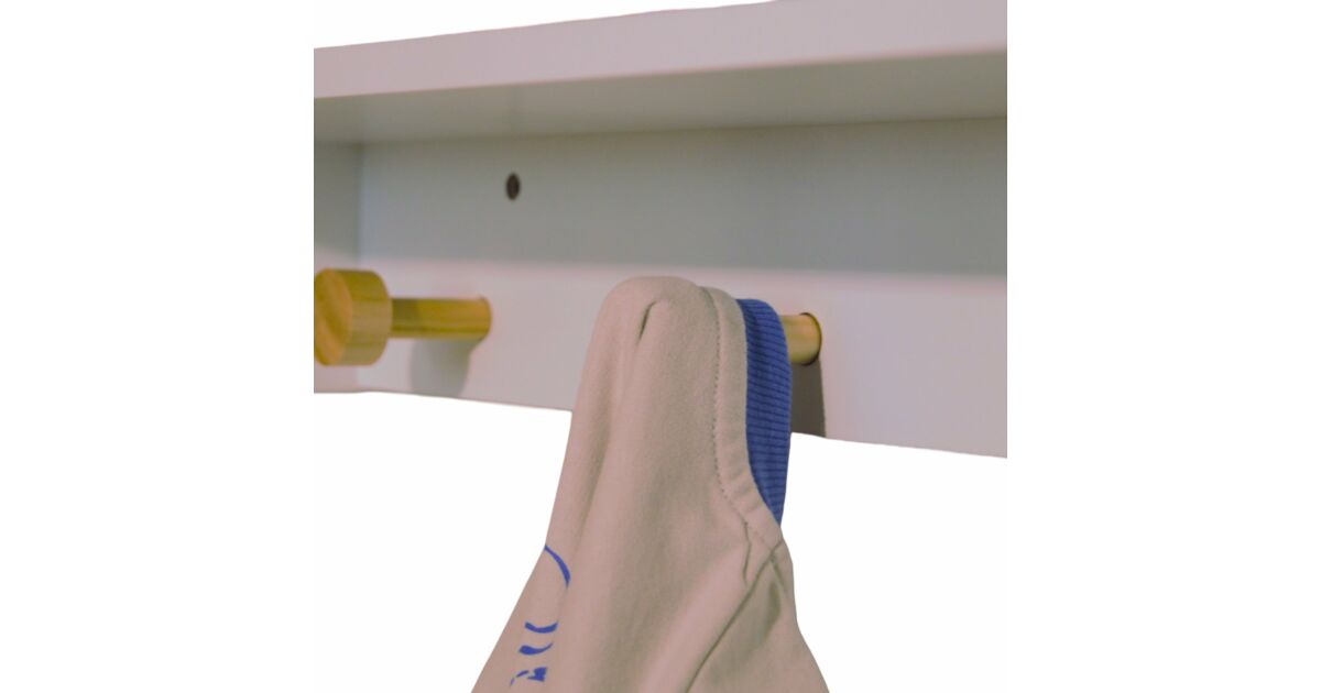 GINGER HOME Nástenná detská knižnica – biela, s poličkami a vešiakmi popis