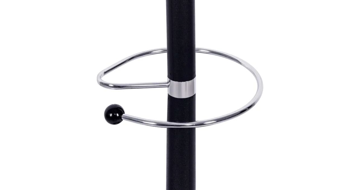 Tento štýlový a praktický stojan na oblečenie je perfektnou voľbou do predsiene, kancelárie alebo akejkoľvek inej miestnosti. 174 cm vysoký stojan je vyrobený z elegantnej, matnej čiernej ocele a má čiernu mramorovú základňu, ktorá zaisťuje výbornú stabilitu. Zaoblené vešiaky zabraňujú zošmyknutiu alebo poškodeniu oblečenia. Integrovaný držiak na dáždniky je praktickým doplnkom.