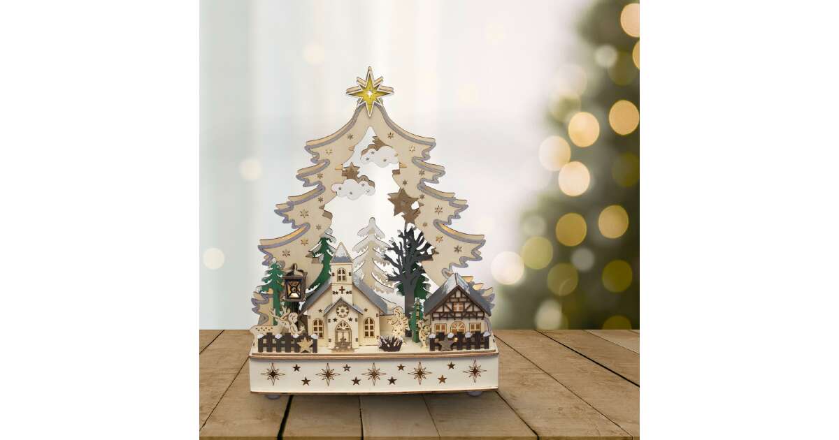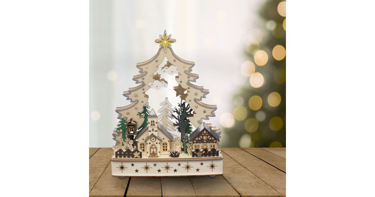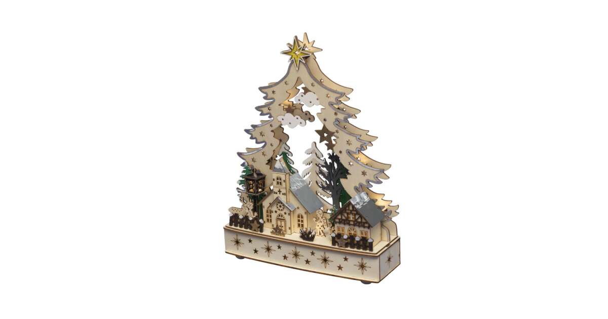 - Úchvatný dizajn: Vyrobené z laserom vyrezávaných drevených prvkov, s detailným motívom vianočnej dedinky.