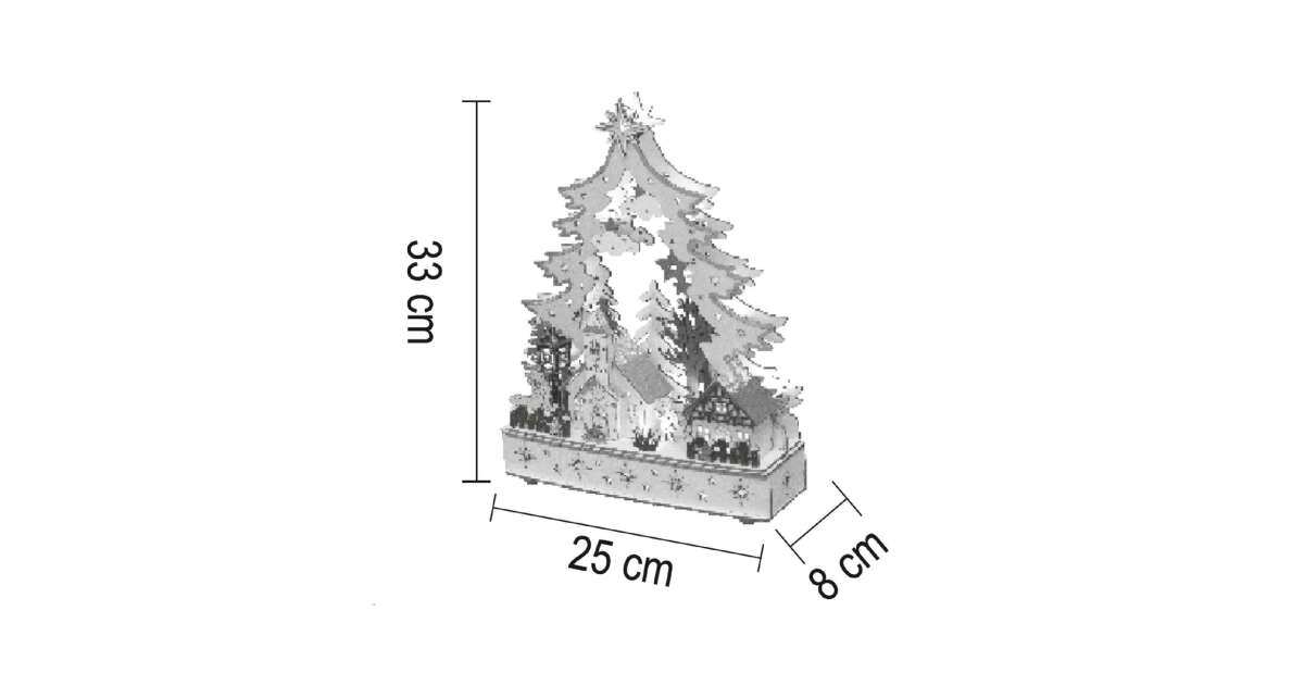 Pričarujte si útulnú vianočnú atmosféru do svojho domova s touto nádhernou, laserom vyrezávanou drevenou vianočnou dedinou ako stolnou dekoráciou! 12 teplých bielych LED diód zabezpečí príjemnú, sviatočnú náladu. Ideálna vianočná dekorácia do obývačky, spálne alebo do ktorejkoľvek vašej obľúbenej miestnosti.