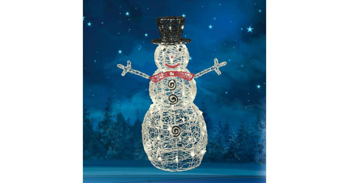 Očarujte svoju záhradu alebo domov týmto krásnym 90 cm vysokým akrylovým snehuliakom! ☃️ 80 LED diód zabezpečí rozprávkovú, sviatočnú atmosféru. Vyberte si svoju obľúbenú farbu svetla: teplá biela alebo studená biela! ✨