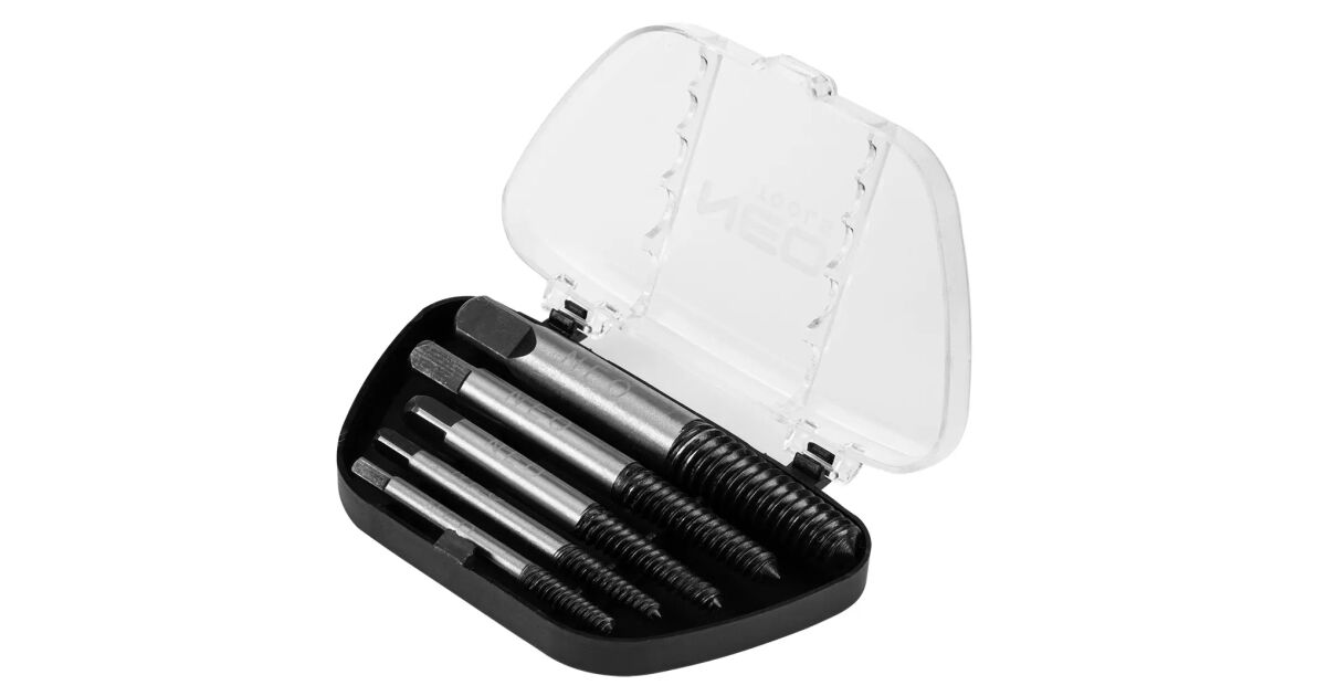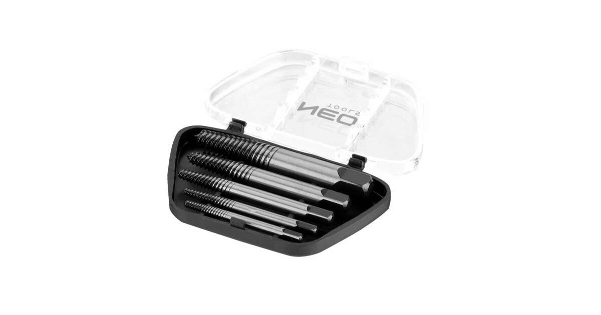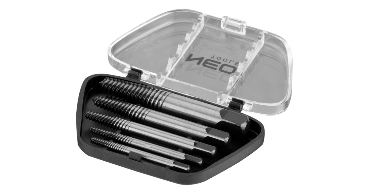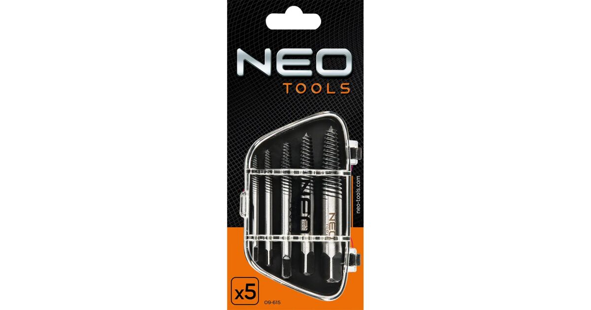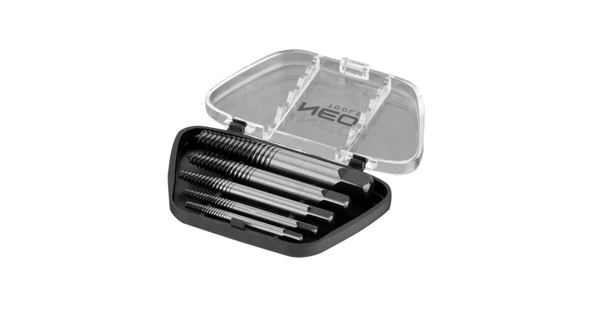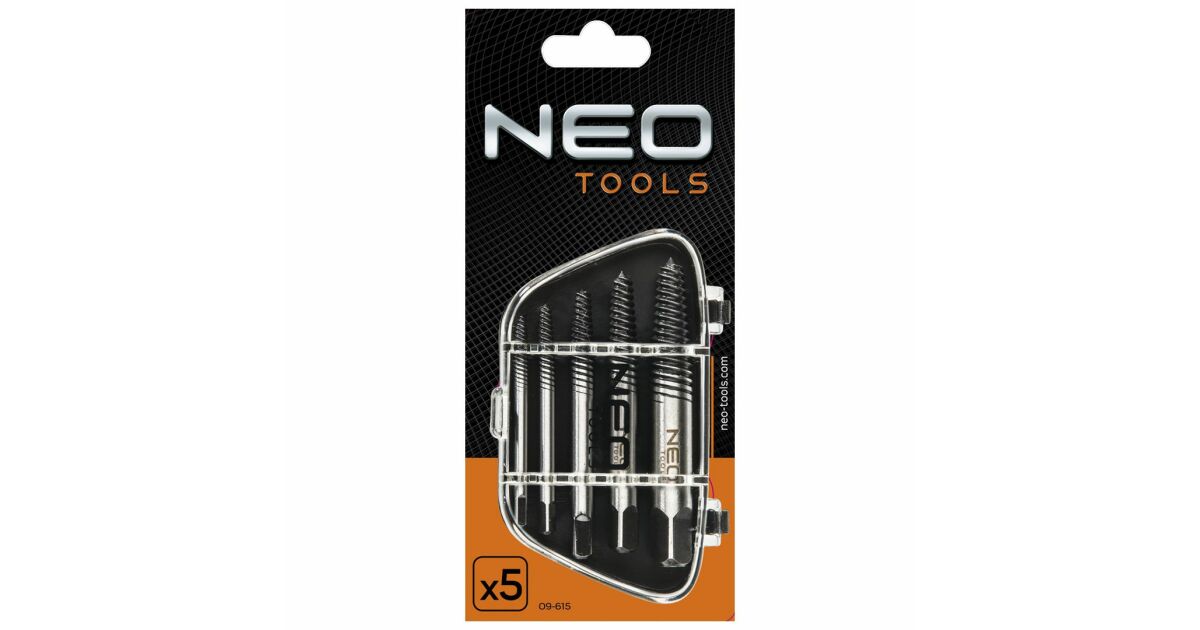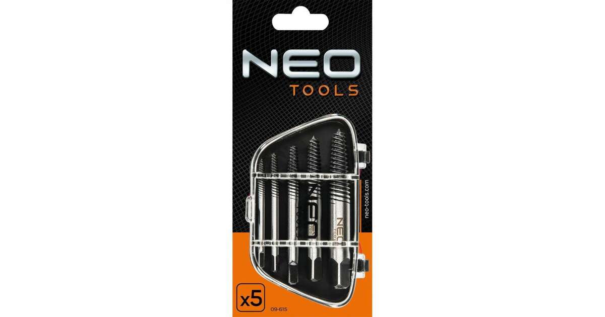 Súprava na odstraňovanie zalomených skrutiek NEO je ideálnym riešením na odstránenie poškodených, zlomených alebo zaseknutých skrutiek. Súprava obsahuje 5 rôznych veľkostí odstraňovačov, takže si poradíte takmer s akoukoľvek skrutkou. Chróm-molybdénová oceľ zaisťuje dlhú životnosť a spoľahlivú prevádzku.