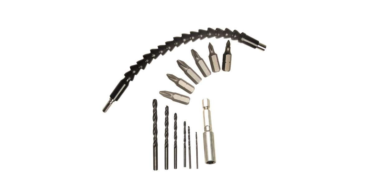 - Bohaté príslušenstvo: 6 ks skrutkovačových bitov, 6 ks vrtákov, držiak bitov, flexibilný držiak bitov a plastový kufrík.