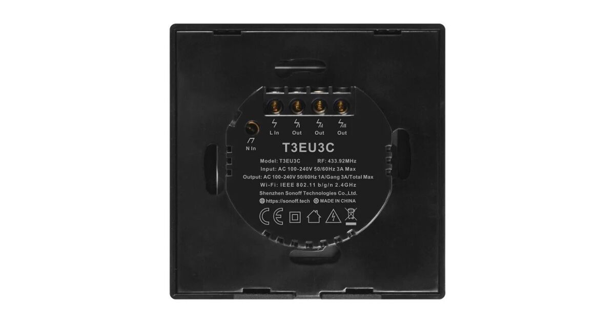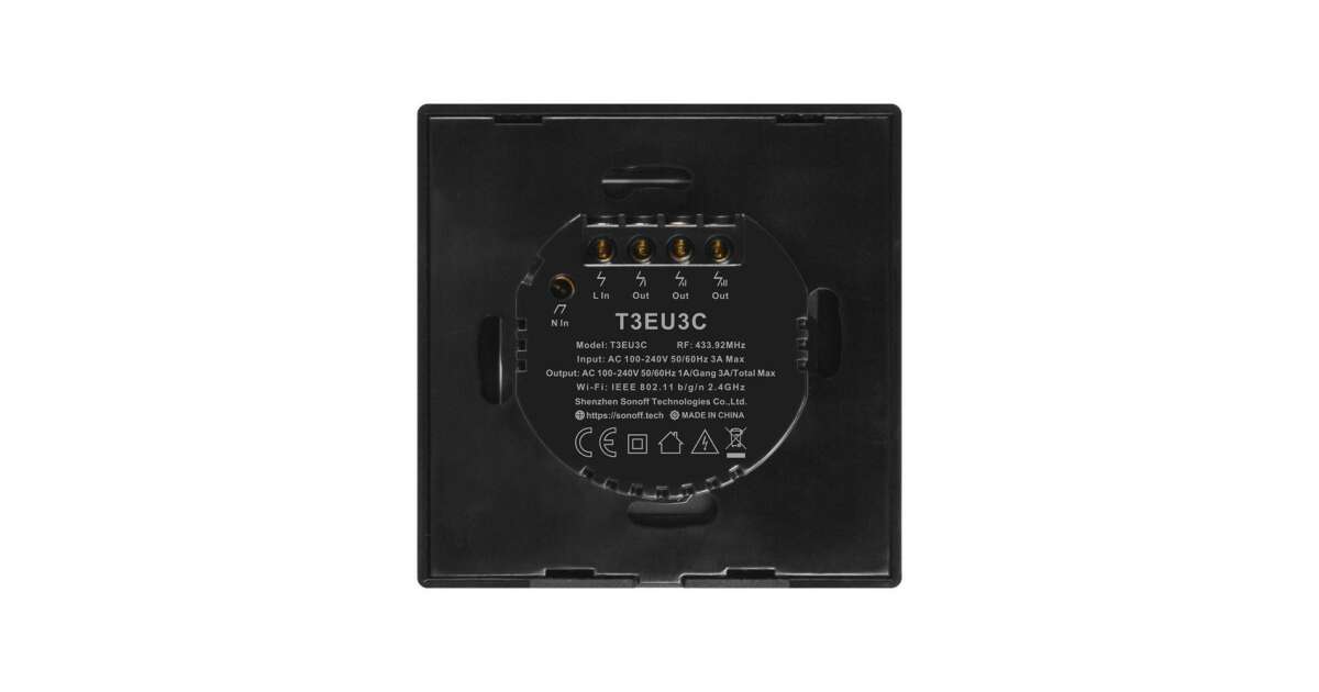 Tento Sonoff T3 inteligentný spínač ti zmení ovládanie osvetlenia doma! S tromi nezávislými kanálmi môžeš ovládať naraz viacero svetiel, dokonca aj na diaľku, z tvojho telefónu. Má elegantný, čierny sklenený dizajn, ktorý perfektne zapadne do každého moderného interiéru. ✨