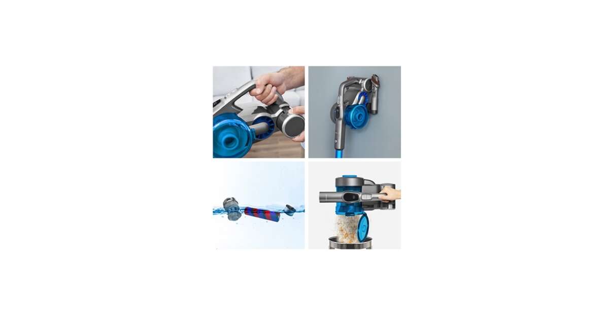 - Ľahký a pohodlný: Bezdrôtový dizajn a ergonomická rukoväť zaisťujú pohodlné upratovanie, aj na ťažko dostupných miestach.