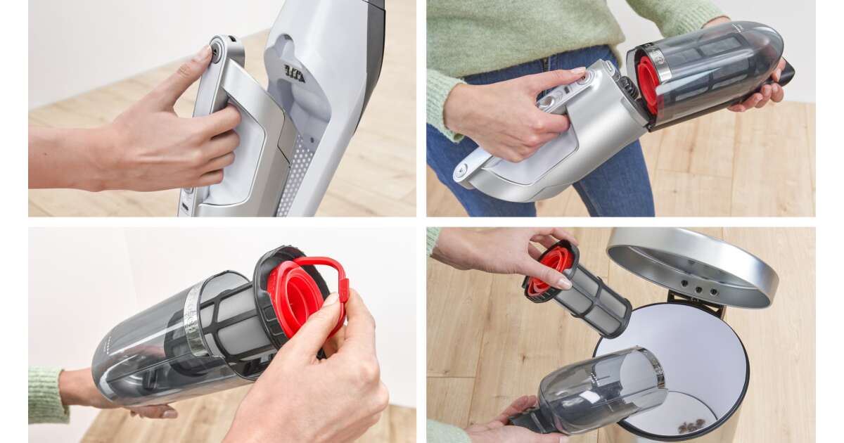 - Jednoduché vyprázdňovanie a čistenie: Nádoba na prach a filter sa dajú ľahko vybrať a vyčistiť.