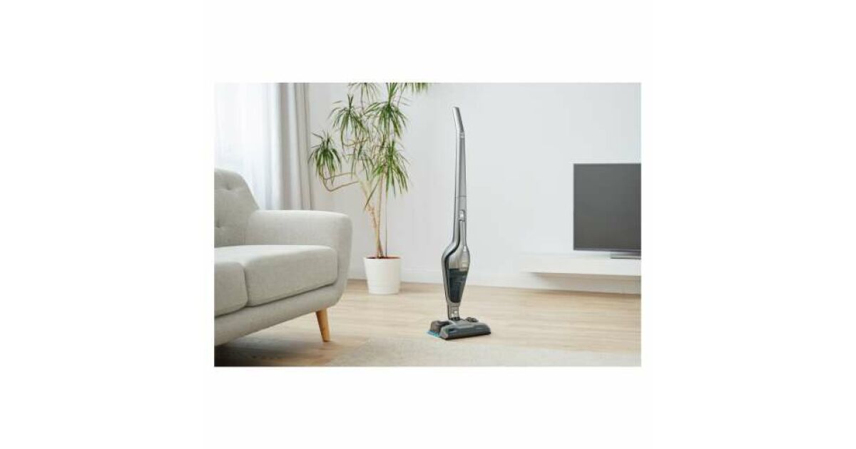 Vlastnosti: - Bez prachového vrecka - Hlučnosť: 79 dB - Napájanie: akumulátor - Mokrý mop - Konštrukcia: 4 v 1 - HEPA filter - Výdrž batérie: 40 min - Doba nabíjania: 6 hodín - Objem vrecka/kontajnera: 0,5 l - Príkon: 100 W - Regulácia výkonu - Výška (cm): 113 cm - Šírka (cm): 27 cm - Hĺbka (cm): 16,2 cm - Hmotnosť: 2,5 kg