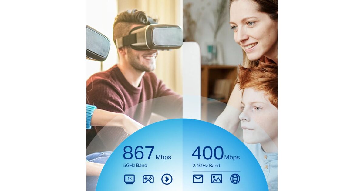 - Vysoká rýchlosť: Až 867 Mbit/s prenosová rýchlosť vďaka štandardu Wi-Fi 5 (802.11ac).
