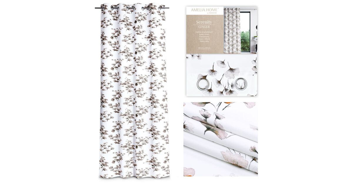 Zatemňovací záves SERENITY biely tlačený vzor strieborný kovový blackout 140x250 AmeliaHome