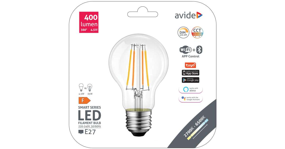 Avide Smart Filament LED Globe A60 4,5W CCT WIFI BLE APP ovládanie popis