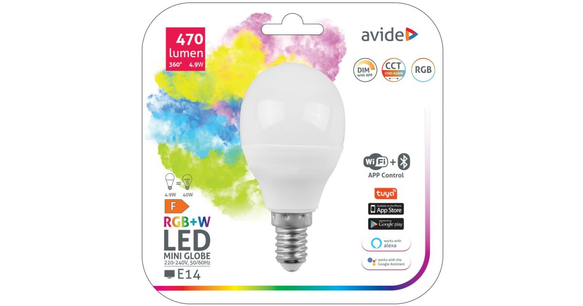 Avide Smart LED Mini Globe 4.9W RGB+W WIFI + BLE APP Control E14 popis