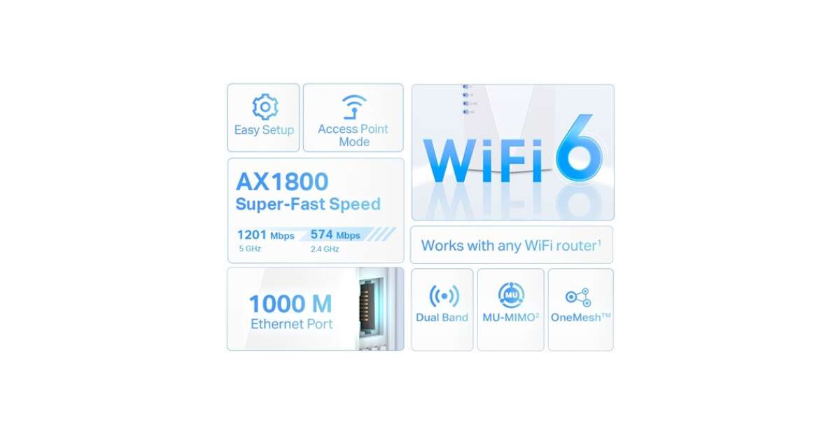 S TP-Link AX1800 WiFi 6 Rozširovačom dosahu si užite rýchle, stabilné a spoľahlivé WiFi v celej vašej domácnosti!