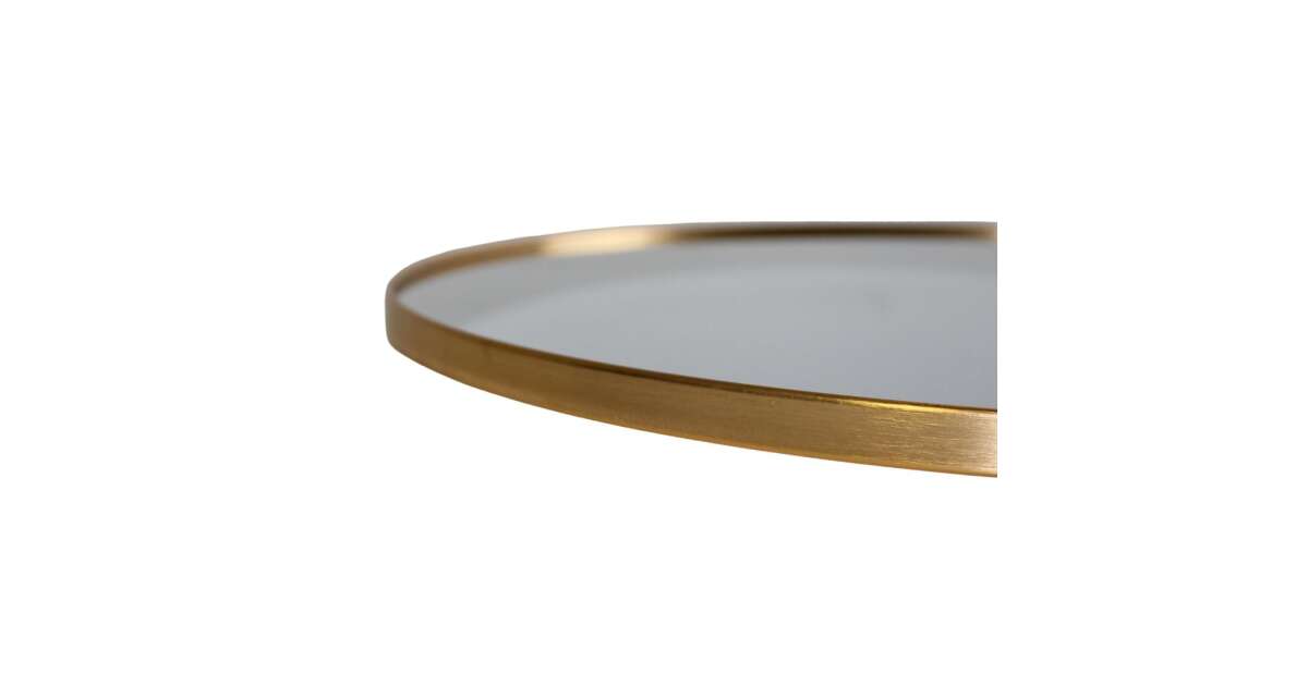 Toto krásne, 50x50 cm veľké kruhové zrkadlo so zlatým kovovým rámom dodá vášmu domovu moderný a elegantný vzhľad. Je perfektnou voľbou do chodby, spálne, obývačky alebo jedálne. Tenký rám neodvádza pozornosť od čistej plochy zrkadla, pričom mu dodáva elegantný rámec.
